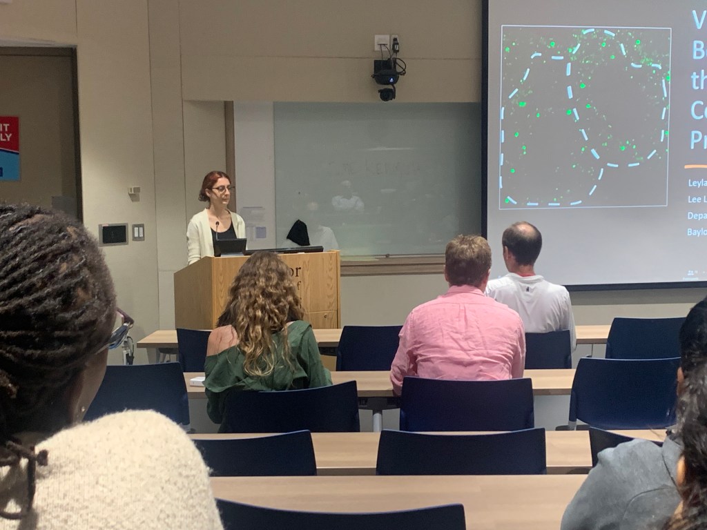 October 30, 2023 – Leyla presented her work developing a FLIM-FRET approach to monitor protein interactions within membrane-less condensates to the RNA community in the Texas Medical Center. She did an excellent job to communicate the concepts, approach and results, which fostered rich discussion and great questions. Importantly, RNA club gave Leyla the opportunity to hone her talk for ASCB in December!
