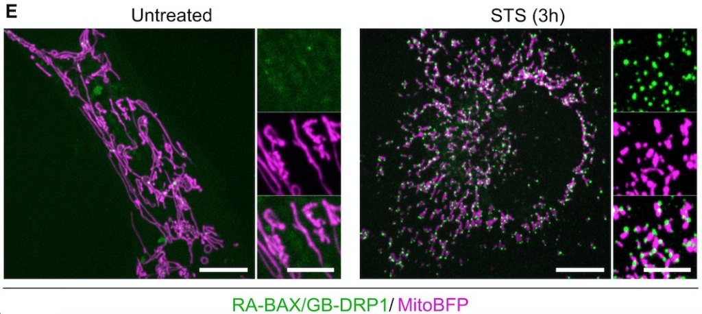 January 13, 2022 – Ana Garcia-Saez and team published a beautiful story showing physical interactions between Bax and Drp1 on mitochondrial membranes during apoptosis. This interaction plays a critical role in mediating the release of cytochrome C into the cytoplasm to potentiate the cell death cascade. Jason’s development of the dimerization dependent fluorescent biosensors (ddFBs) to resolve endoplasmic reticulum and processing (P)-body contact sites overlapped with Raquel Salvador-Gallego’s (Ana’s PhD student) time in the Voeltz Lab. Our collaboration fostered the use of ddFBs in the spatiotemporal resolution of Bax and Drp1 interactions on mitochondrial membranes upon the initiation of cell death. Check it out at EMBOJ!
